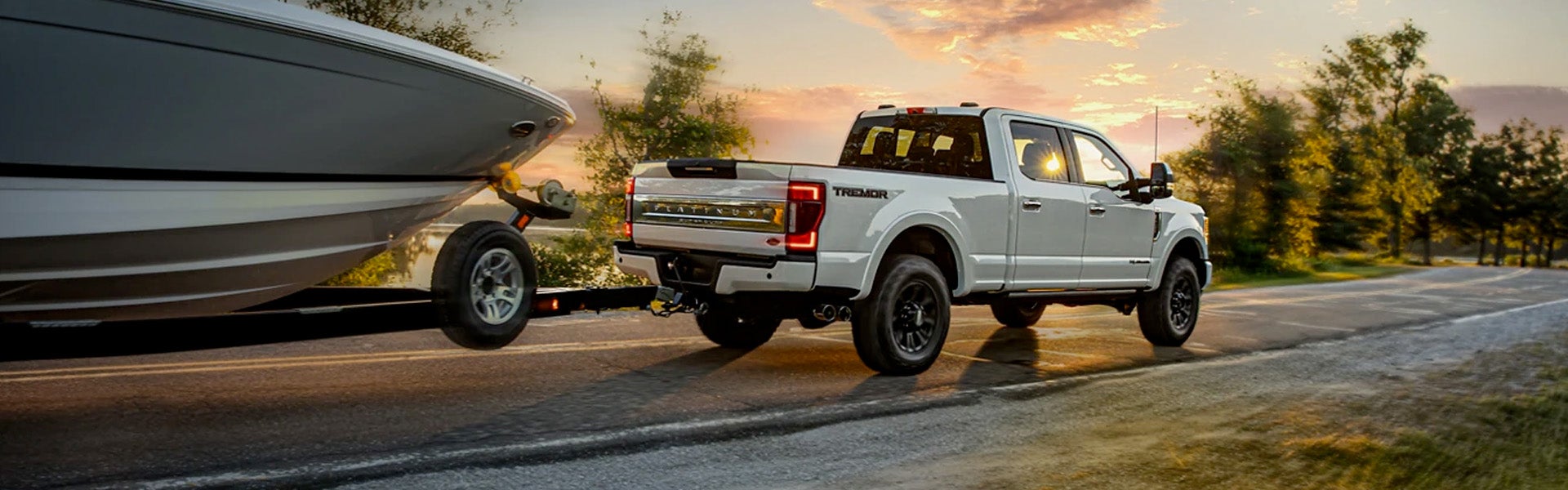 The 2022 Ford SuperDuty trucks offer stronger performance than ever before. Each comes with selectable drive modes that include Eco, Normal, Tow-Haul, Slippery, Deep Sand/Snow, and available Rock Crawl mode for optimized performance. An available integrated electric winch offers 12,000 pounds of power. With the F-450, you can get an available GCWR of 43,500 pounds. With the Tremor Off-Road package, you add an off-road-tuned suspension setup and 35-inch maximum-traction tires.