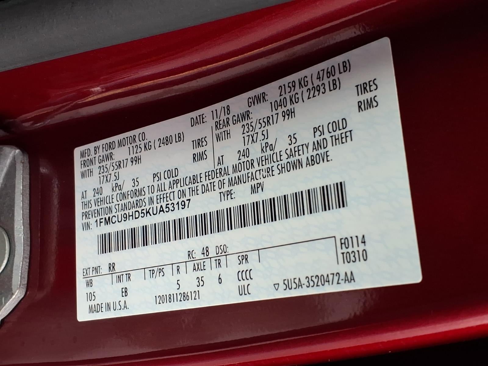 1FMCU9HD5KUA53197