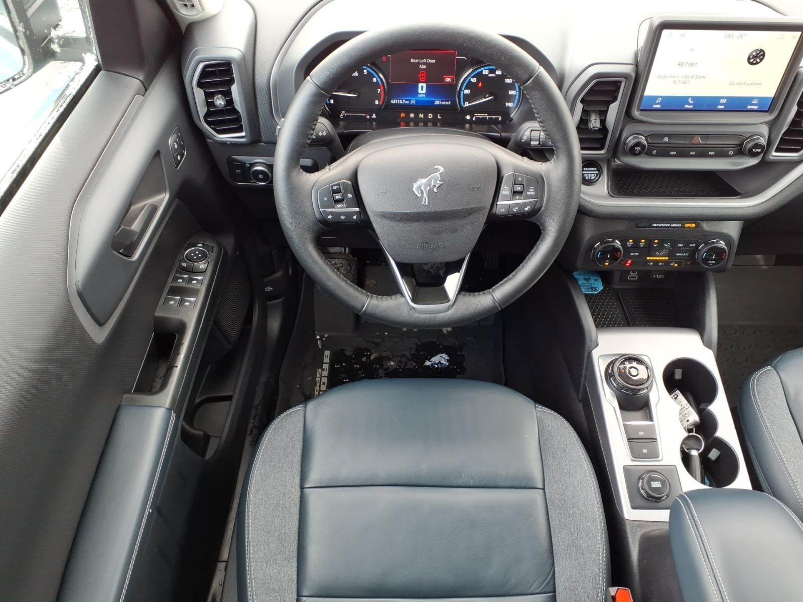 This beauty just arrived! Don't miss out on this ride!!! This vehicle is a 2023 Ford Bronco Sport Outer Banks SUV, certified pre-owned and with an area 51 exterior. It has driven 43,101 miles and is powered by a 1.5 liter 3 cylinder engine with a turbocharged powertrain. It has an all wheel drive system and an area 51 exterior that is sure to turn heads. The car also has an impressive fuel economy of 25 mpg in the city and 28 mpg on the highway, making it an economical choice for those who need to get from point A to point B. It also has a crash test rating of 5 out of 5 stars, making it even safer for drivers. This car also comes with a number of features such as blind spot sensor, hill start assist, and on demand four wheel drive. An autocheck history is also available for this car so drivers can be sure of its quality before making their purchase. Come see why Bob Maxey Ford of Howell is the difference!! The only Livingston County President's Award winner 5 years in a row!! If it doesn't say Bob Maxey Ford of Howell then you definitely paid too much!!